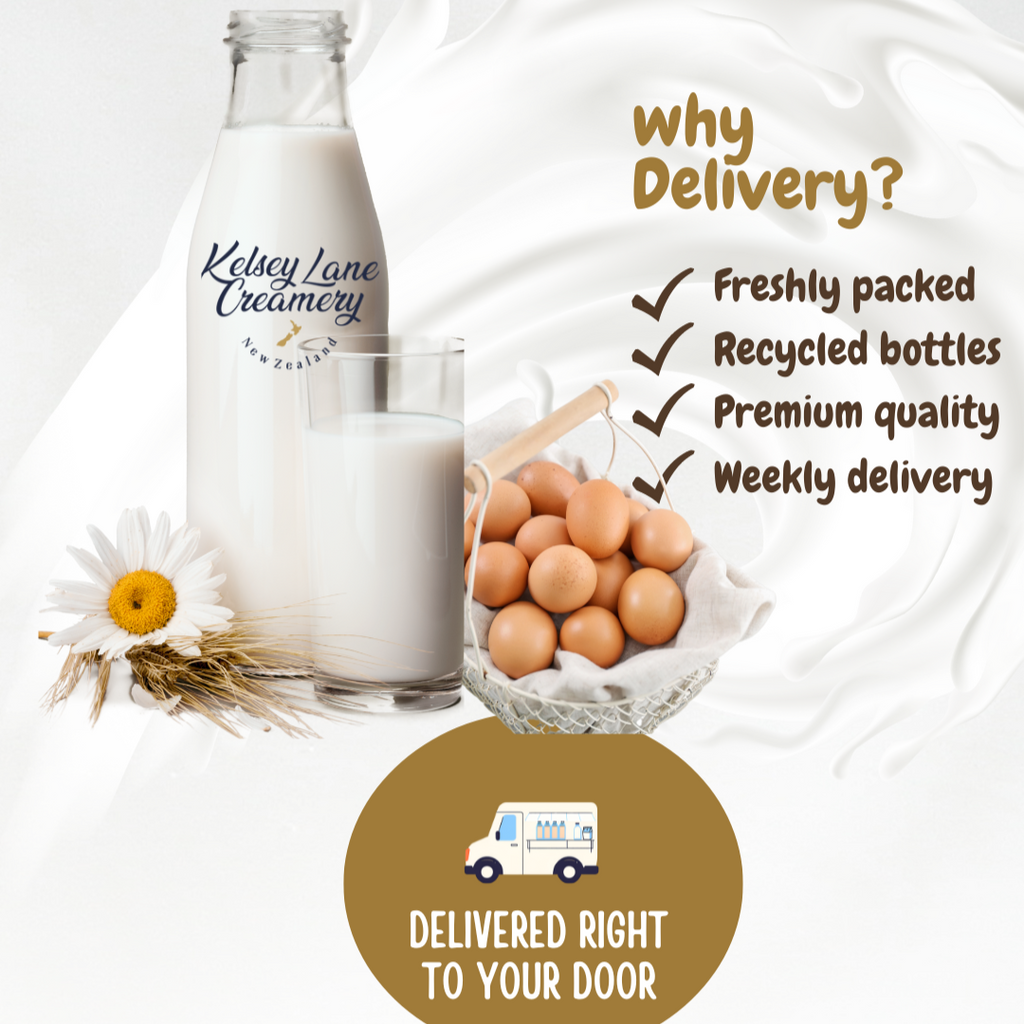 Milk done the proper way. Kelsey Lane Creamery’s fresh milk comes from Kaipaki Dairies who has happy Kiwi cows roaming free on lush pastures in Kaipaki. The milk is naturally delicious which is bottled fresh and delivered to your door. Non-homogenised (a fancy way of saying non-filtered), you’ll taste the richness of cream in a deliciously thick whole milk. It contains all the goodness of normal milk yet it’s easier on tummies.